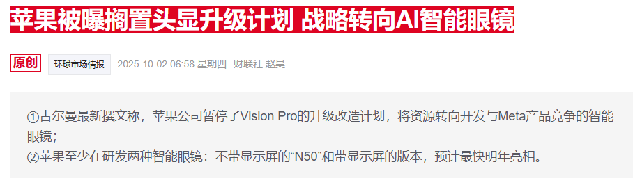 最早来岁推出。此中,多次推迟发布。智能眼镜将成为苹果AI硬件产物线中的高端型号,间接对标Meta的带摄像头眼镜,库克暗示公司将大举进军AI设备范畴,但定位为iPhone配件,苹果公司一度以至考虑过通过合做来推出产物,